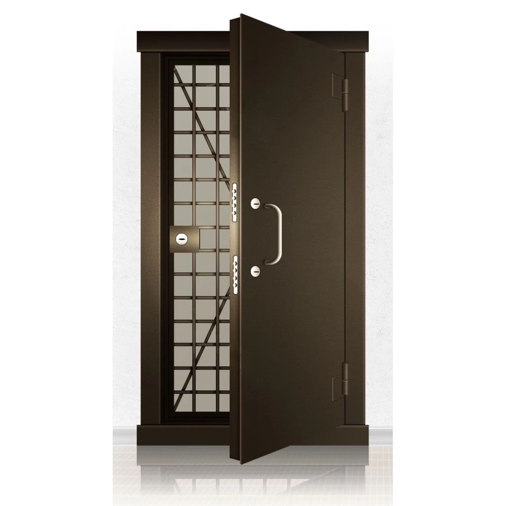 Металлические двери КХО и КХН представляют собой входные блоки, обладающие высоким уровнем взломостойкости и состоят из трех основных элементов: усиленного каркаса, сплошного металлического полотна и решетчатой двери. Дверной блок изготавливается из стального уголка 100*100 мм. Места крепления блока к стене цементируются и закрываются стальными наличниками шириной 40 мм. Крепеж заходит вглубь стены на 80 мм. В конструкции внешней створки монтируются ребра жесткости, для обшивки используется сталь толщиной не менее 3 мм. Внутренняя решетка изготавливается из прутка диаметром 16 мм. Размер ячеек решетки должен составлять не более 15 на 15 см. В точках пересечения прутья надежно приваривают друг к другу. В КХО и КХН необходимо поддерживать определенную температуру и влажность. Для этого внутреннее пространство глухой двери заполняется теплоизоляционным материалом, а по периметру двери приклеивается уплотнитель. Такие двери оборудуются замками с повышенным уровнем взломостойкости. Специализированные двери КХО и КХН в Корсакове могут быть оснащены сигнализацией, в конструкции могут быть проушины для навесного замка и элементами для опечатывания. Если идет речь о двери в комнату хранения оружия, в створке оборудуется окно для выдачи оружия и спец. средств, которое накрывается стальной дверцей.