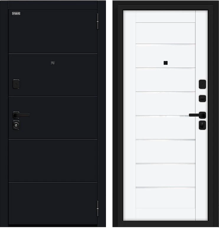 Надежная входная Дверь Браво Прайм/SBlack-Black Shell/White Silk премиум класса по цене 42 710 руб. Большая толщина стали защитит от проникновения в ваш дом, квартиру или коттедж. Используется очень качественная фурнитура: замки, цилиндры, ручки, защелки. Покрытие и отделка двери изготовлено под внимательным контролем производителя. Дверь имеет долгий срок службы и гарантию.