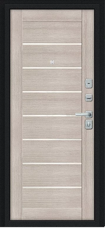 Надежная входная Дверь Браво Техно/BChrome Букле черное/Cappuccino Melinga премиум класса по цене 37 410 руб. Большая толщина стали защитит от проникновения в ваш дом, квартиру или коттедж. Используется очень качественная фурнитура: замки, цилиндры, ручки, защелки. Покрытие и отделка двери изготовлено под внимательным контролем производителя. Дверь имеет долгий срок службы и гарантию.